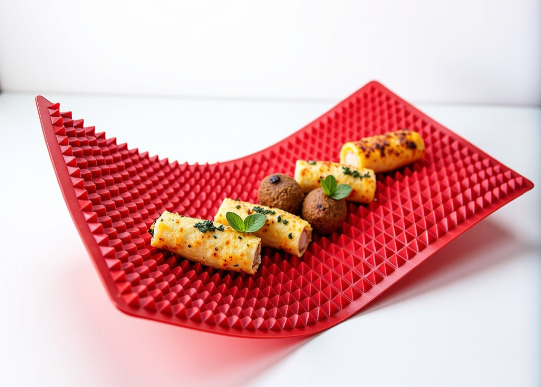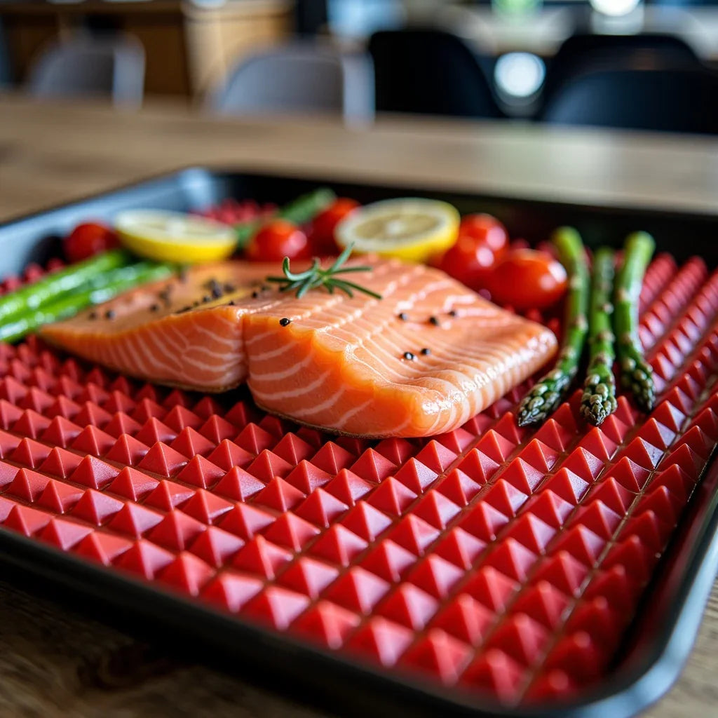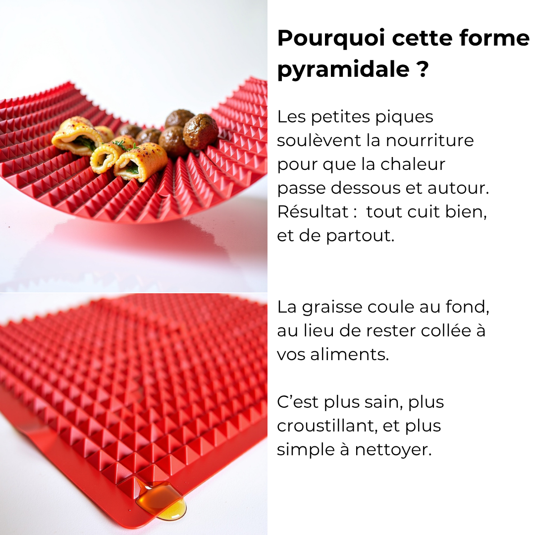 • Structure : surface pyramidale antiadhésive pour une cuisson uniforme et sans matière grasse