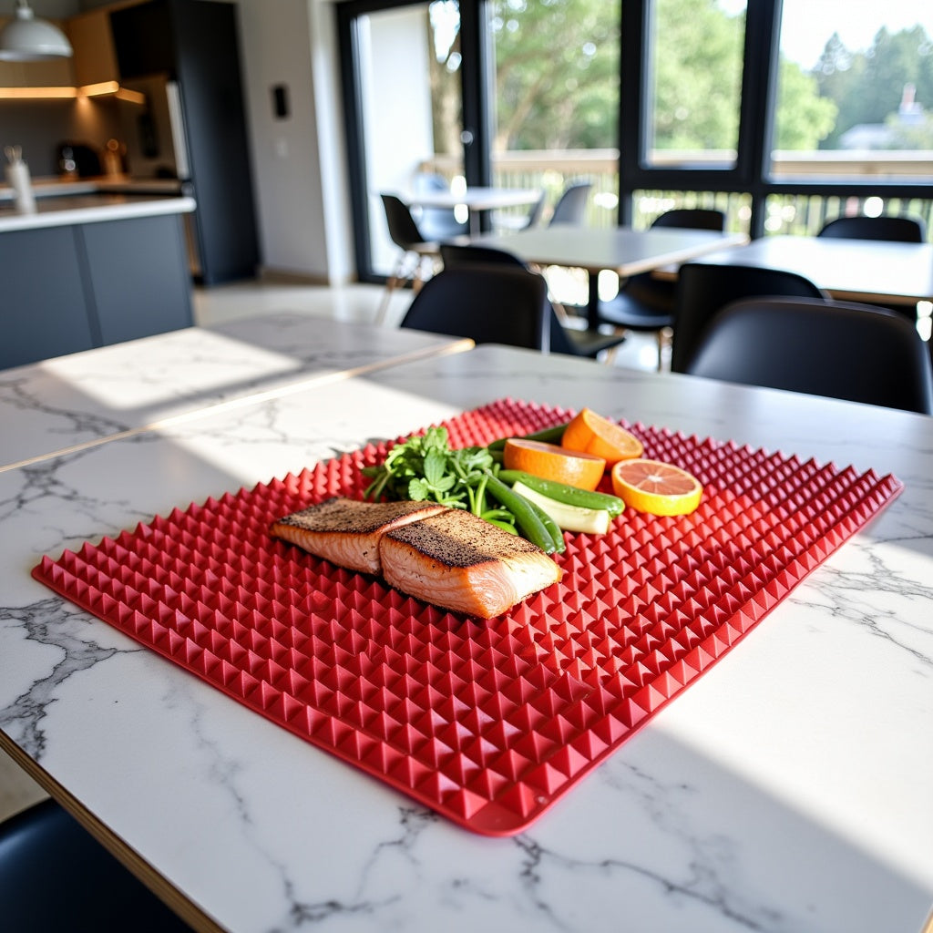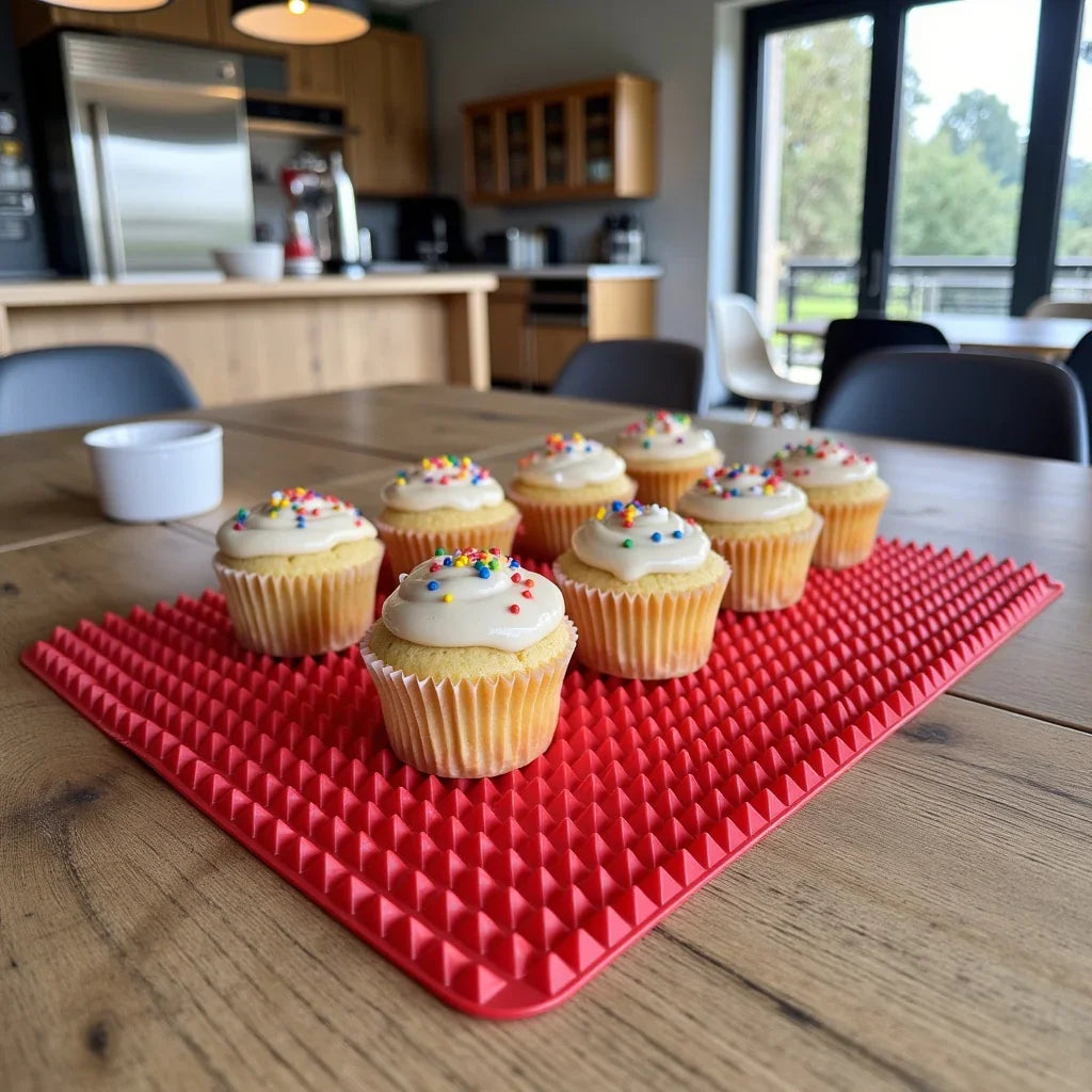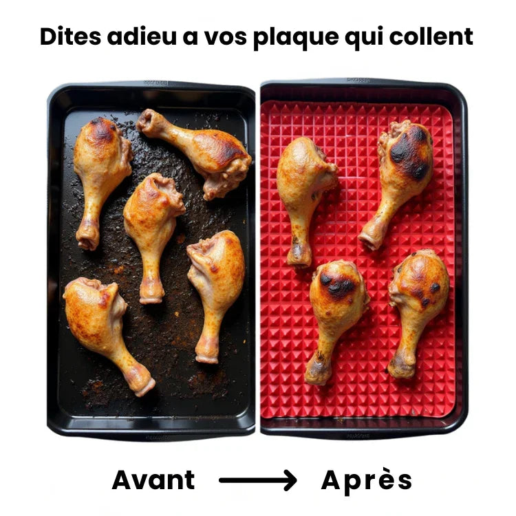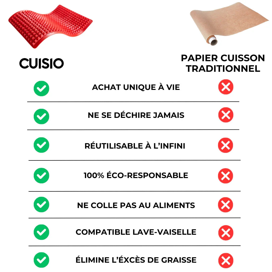 Notre tapis en silicone alimentaire sans BPA résout tous ces problèmes en une seule solution. Il remplace à vie le papier cuisson, supporte jusqu’à 230 °C, est réutilisable plus de 1000 fois, et garantit une cuisson homogène, propre et sans ajout de matière grasse.